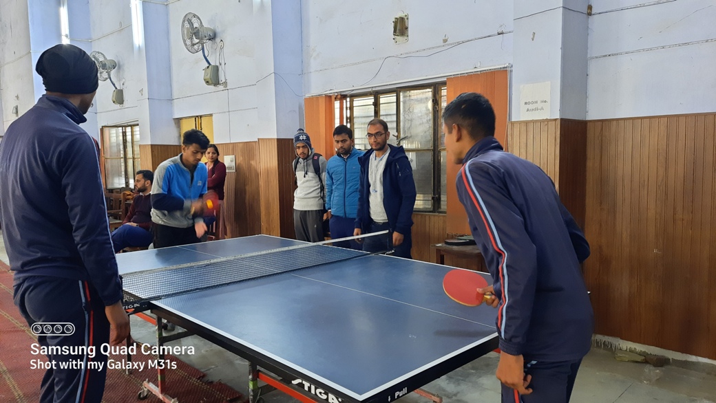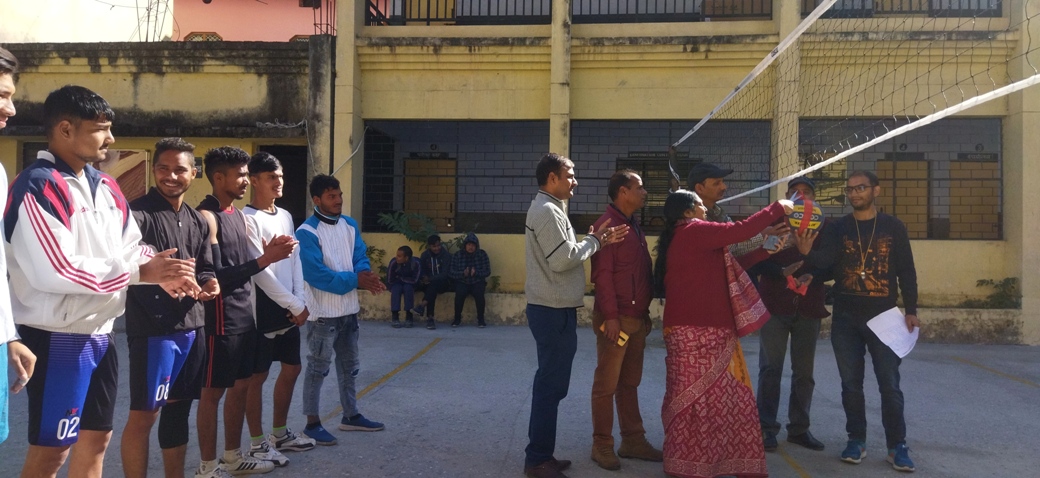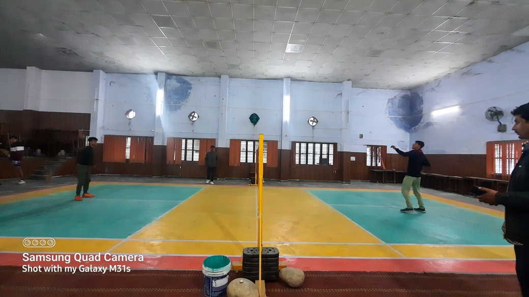 Presently college has not its own playground. During the annual sports Nagar Palika Gochar provides us playground. Players of the college use the Gochar for practice which is 10 Km away from the college campus. In Annual sports all the athletics events are carried out the Gochar playground. For indoor event college has its own multipurpose hall where badminton and T.T. games are played. It has capacity of one badminton court and one T.T. table. In the college campus there volley ball ground in which volley ball game is plyed. When there is large number of participants in the indoor games Nagar Palika Karanprayag provides us its indoor complex. College will develop its own playground in future in the nearby place which is still remains undeveloped due to some technical problem.